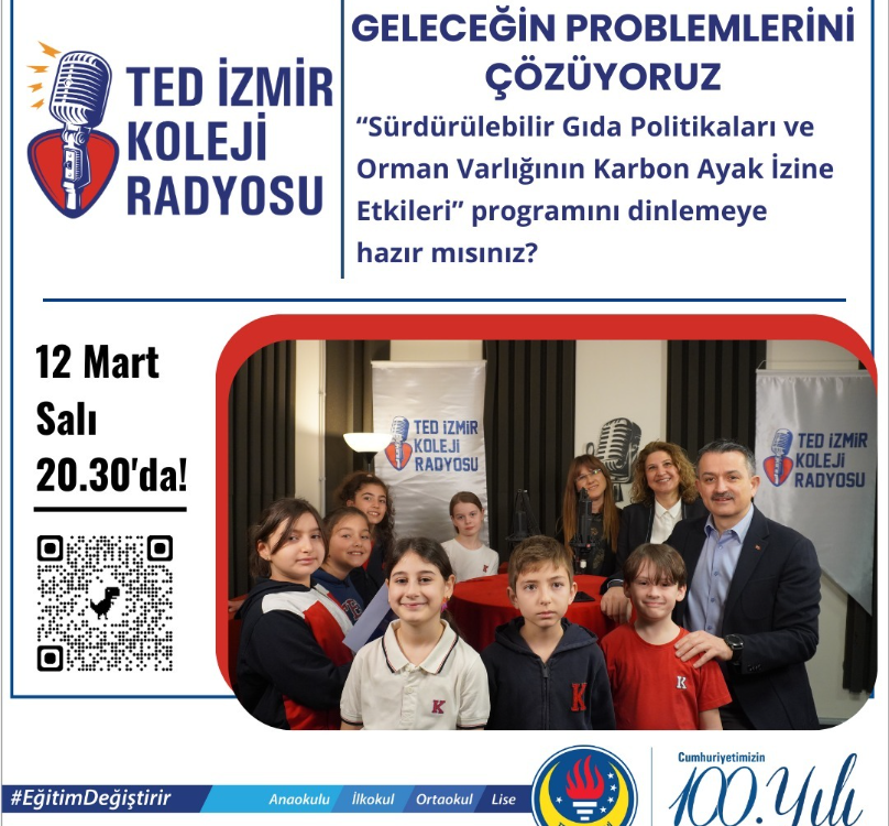 TED İzmir Koleji Radyosu’nda bu hafta çalışmalarını “Karbon Dedektifleri” adıyla sürdüren okulumuz FPSPI Proje Kulübü öğrencileri Tarım ve Orman Eski Bakanı Dr. Bekir Pakdemirli’yi konuk ettiler.