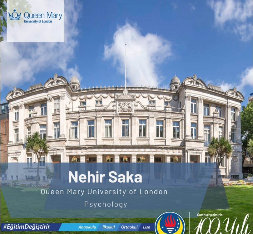 Değerli öğrencimiz Nehir Saka, Londra’nın seçkin üniversitesi Queen Mary University of London – Psychology bölümünden kabul almıştır.