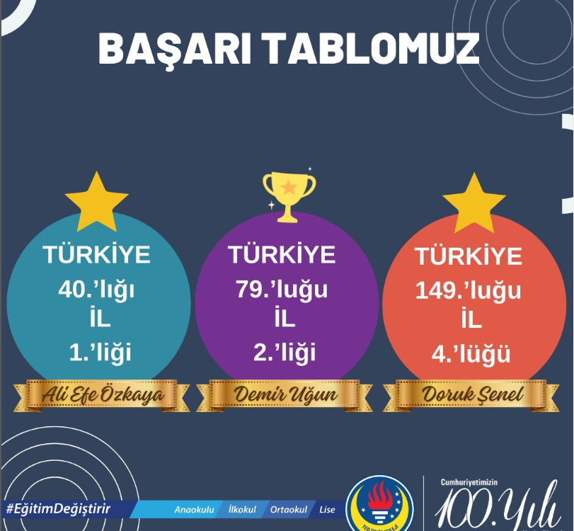 23 Şubat tarihli Türkiye Geneli Çanta yayınları 8. Sınıf LGS deneme sınavında okul derecemiz 530 okul arasında 20.’liktir.