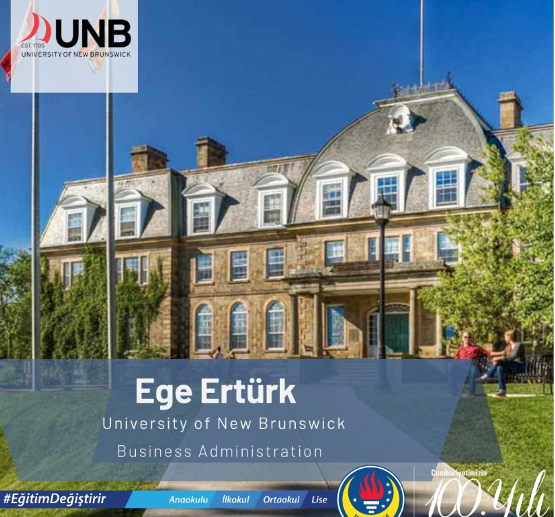Değerli öğrencimiz Ege Ertürk, Kanada’nın seçkin üniversitesi University of New Brunswick – Business Administration bölümünden kabul almıştır. Öğrencimizi tebrik eder, başarılarının devamını dileriz.