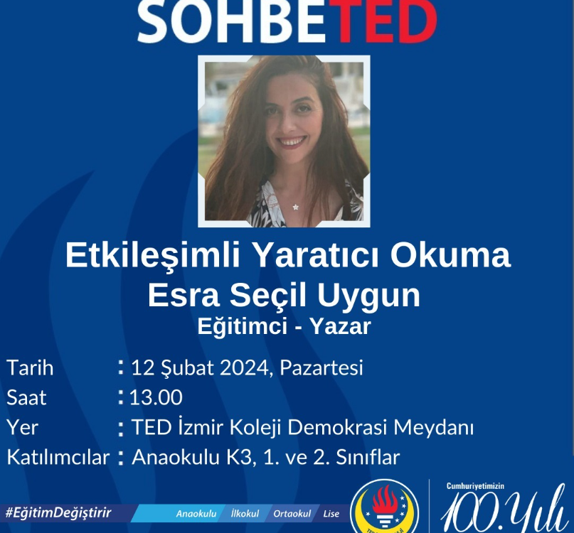 SohbeTED etkinliklerimizde bu hafta Eğitimci ve Yazar Esra Seçil Uygun “Etkileşimli Yaratıcı Okuma” konusuyla öğrencilerimizle buluşacak.