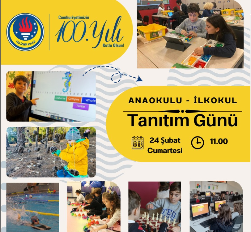 TED İzmir Koleji Anaokulu ve İlkokul Tanıtım Günü Sunumu 24 Şubat 2024 Cumartesi günü, okul kampüsümüzde gerçekleştirilecektir.