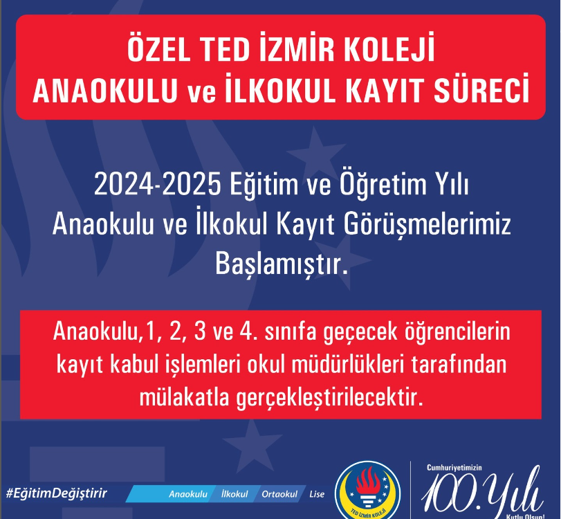 2024-2025 Eğitim öğretim yılı anaokulu ve ilkokul kayıt görüşmelerimiz başlamıştır. Anaokulu, 1,2,3 ve 4. sınıfa geçecek öğrencilerin kayıt kabul işlemleri okul müdürlükleri tarafından mülakatla gerçekleştirilecektir.
