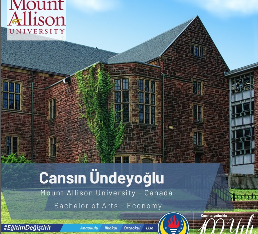 12.Sınıf öğrencimiz Cansın Ündeyoğlu Canada Mt. Allison University Bachelor of Arts – Economy bölümüne kabul almıştır. Kanada Çift Diploma Programı’mızın öğrencisi olan Cansın, söz konusu programa ait not dökümü ile okula kabul edilmiştir.