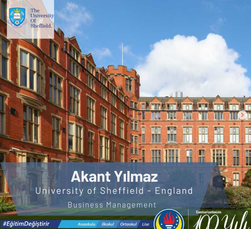 Değerli öğrencimiz Akant Yılmaz, İngiltere’nin University of Birmingham – Business Management with Marketing, University of Leeds – Business Management with Marketing, University of Sheffield – Business Management bölümlerine kabul almıştır.