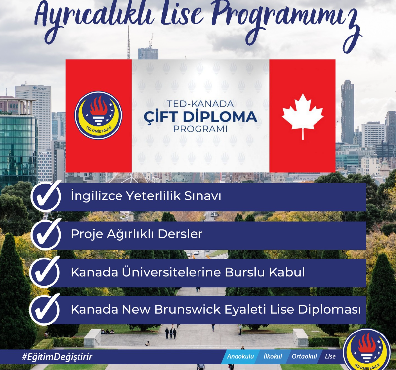 Kanada Çift Diploma Programı (Canada Dual Diploma Program) TED İzmir Koleji Lisesi’nin ayrıcalıklı programlarının başında yer almaktadır.